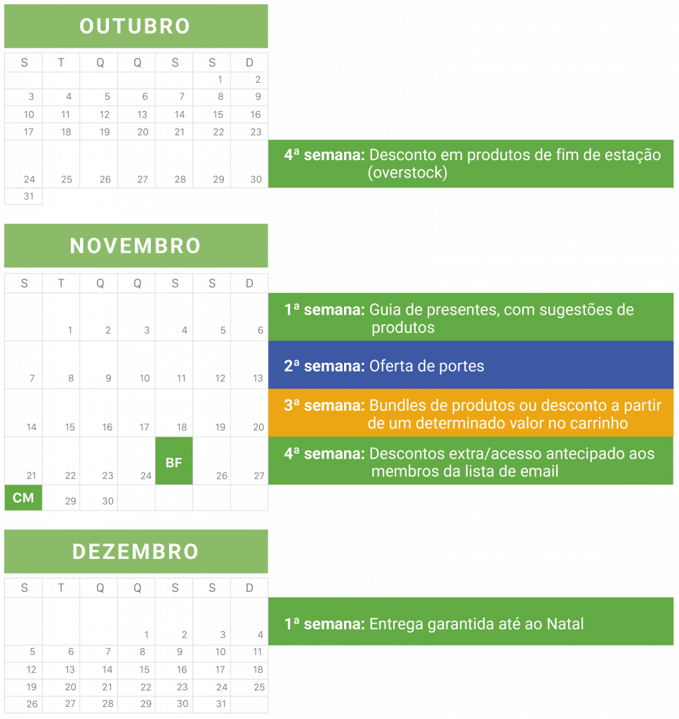 Aproveite para alertar os seus clientes para promoções e descontos da época. Deixamos-lhe um exemplo de planeamento para inspiração:
