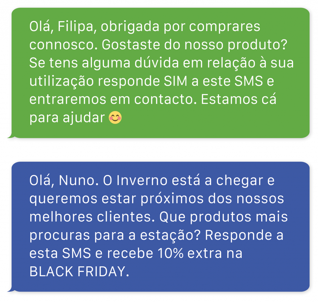 É importante estabelecer uma relação com o cliente e, por isso, porque não pedir feedback permitindo ao cliente responder diretamente a uma SMS e começar um diálogo com o mesmo? Mais do que pedir feedback, procure mostrar ao seu cliente que está lá para ele: